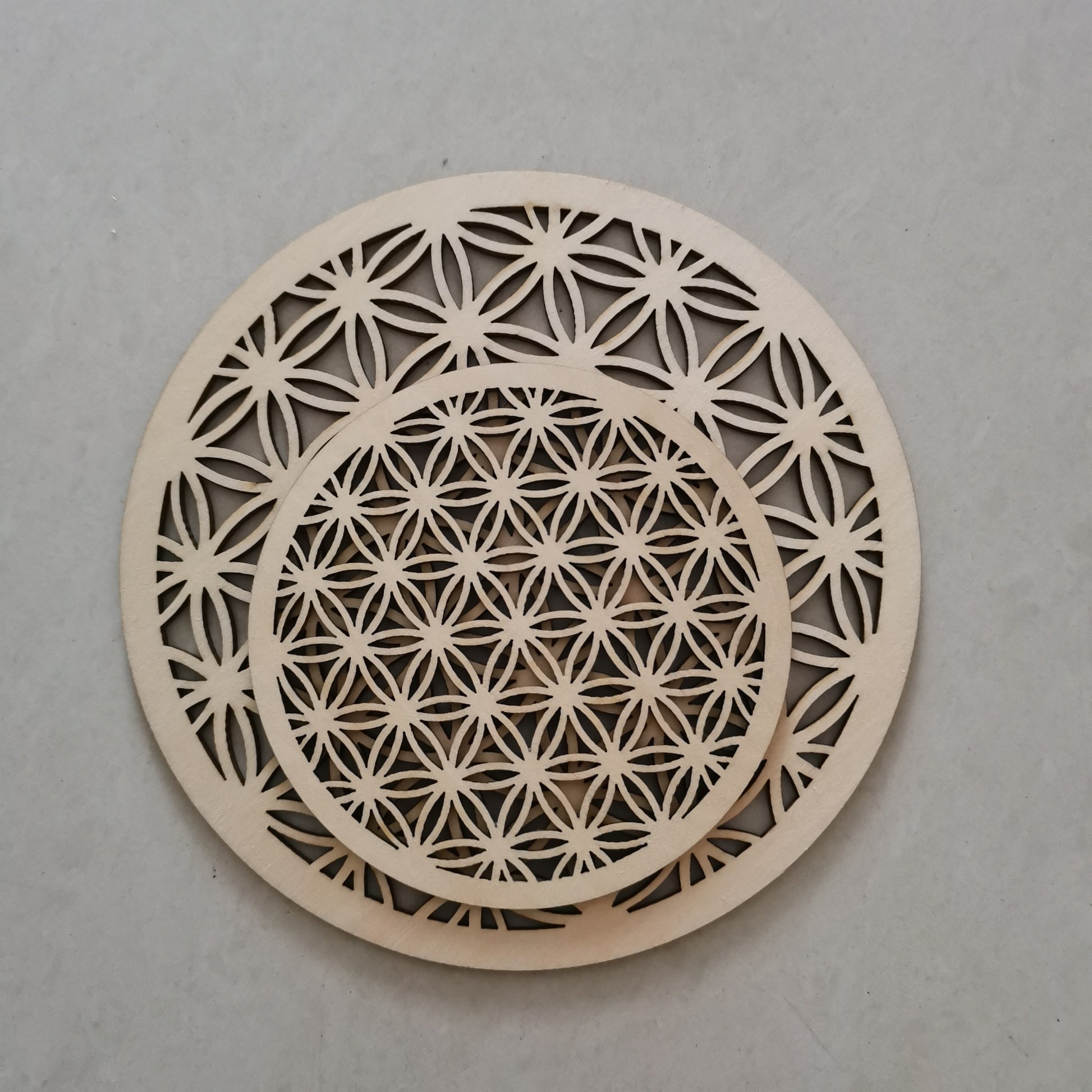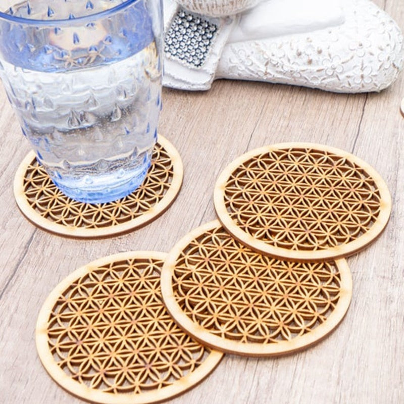 10 pezzi di sottobicchieri in legno tagliati a forma di fiore della vita, sottobicchieri in legno